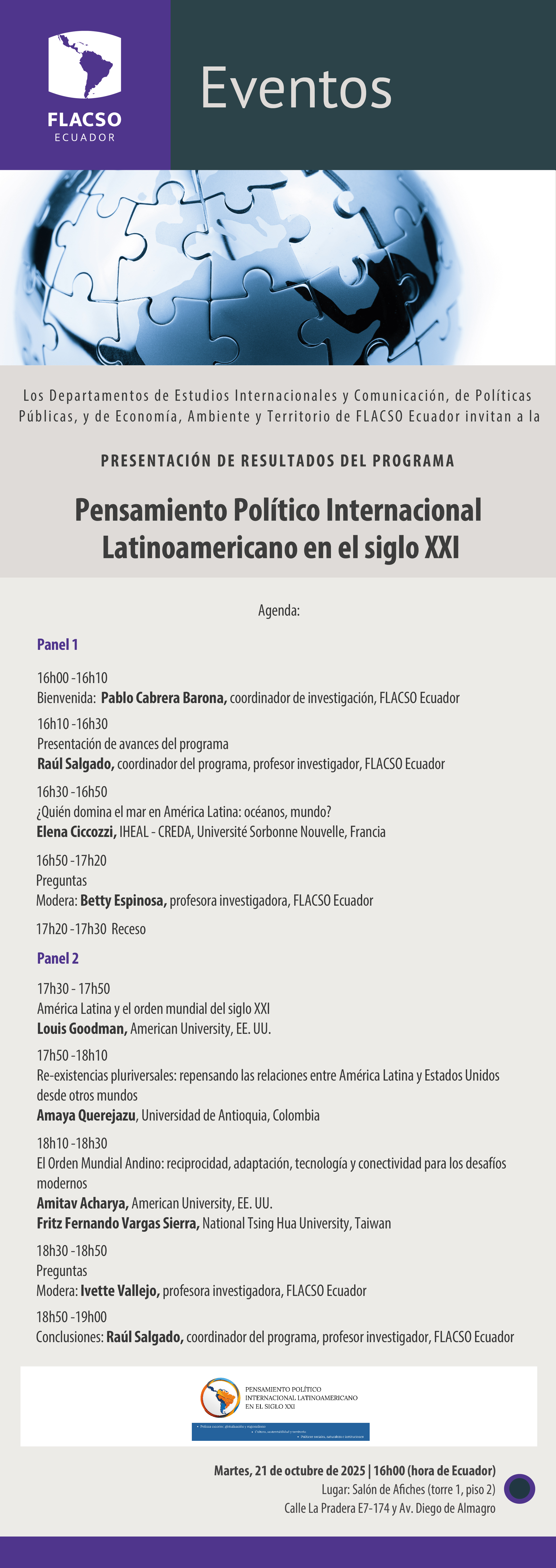 Presentación de resultados del programa Pensamiento Político Internacional Latinoamericano en el siglo XXI