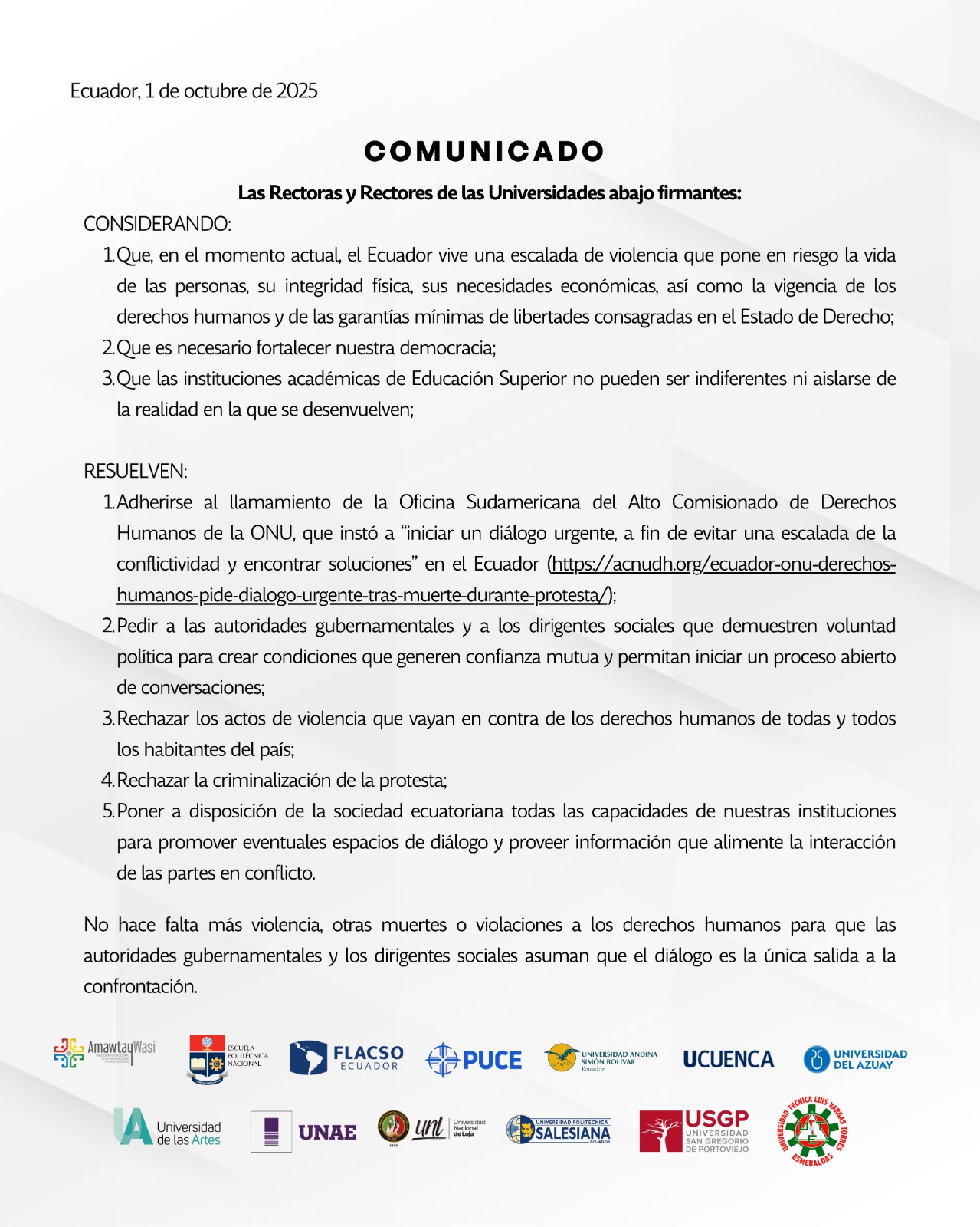 Comunicado: Pronunciamiento de universidades ante la situación nacional