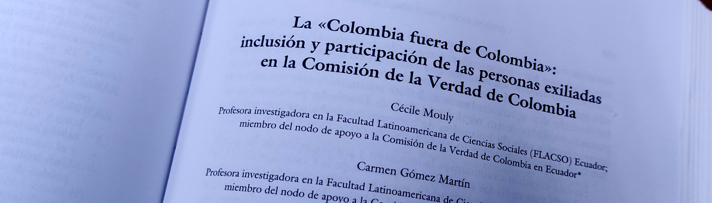 “La «Colombia fuera de Colombia»: inclusión y participación de las personas exiliadas en la Comisión de la Verdad de Colombia”, capítulo de Cécile Mouly y Carmen Gómez Martín en Balances y perspectivas del cumplimiento del Acuerdo de Paz en Colombia (2016-2022), editado por Alexander Ugalde e Iratxe Perea (Universidad del País Vasco)